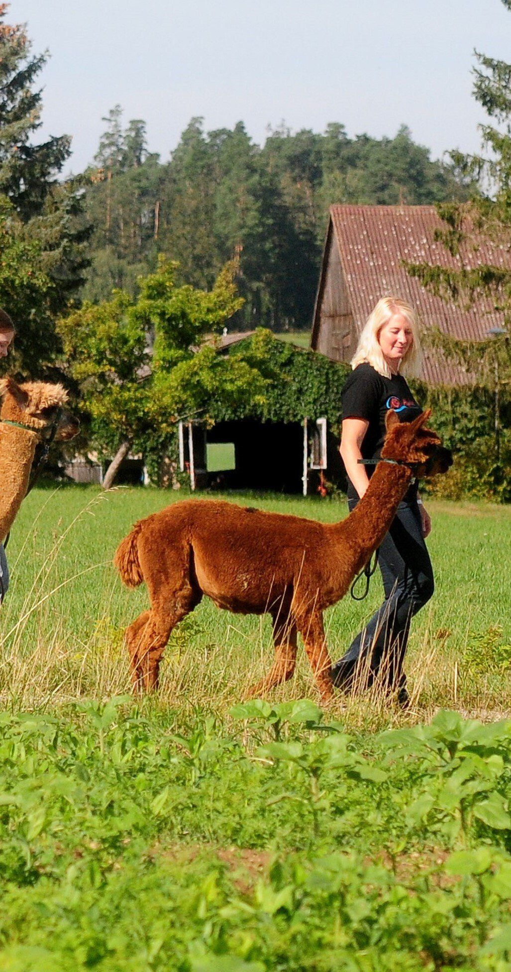 Wir bieten geführte Wanderungen mit unseren Alpakas und Lamas an.