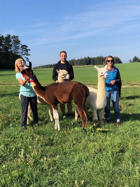 Vor jeder Tour gibt es eine kurze Einführung und Wissenswertes über Alpakas und zum sicheren Umgang mit den Tieren.